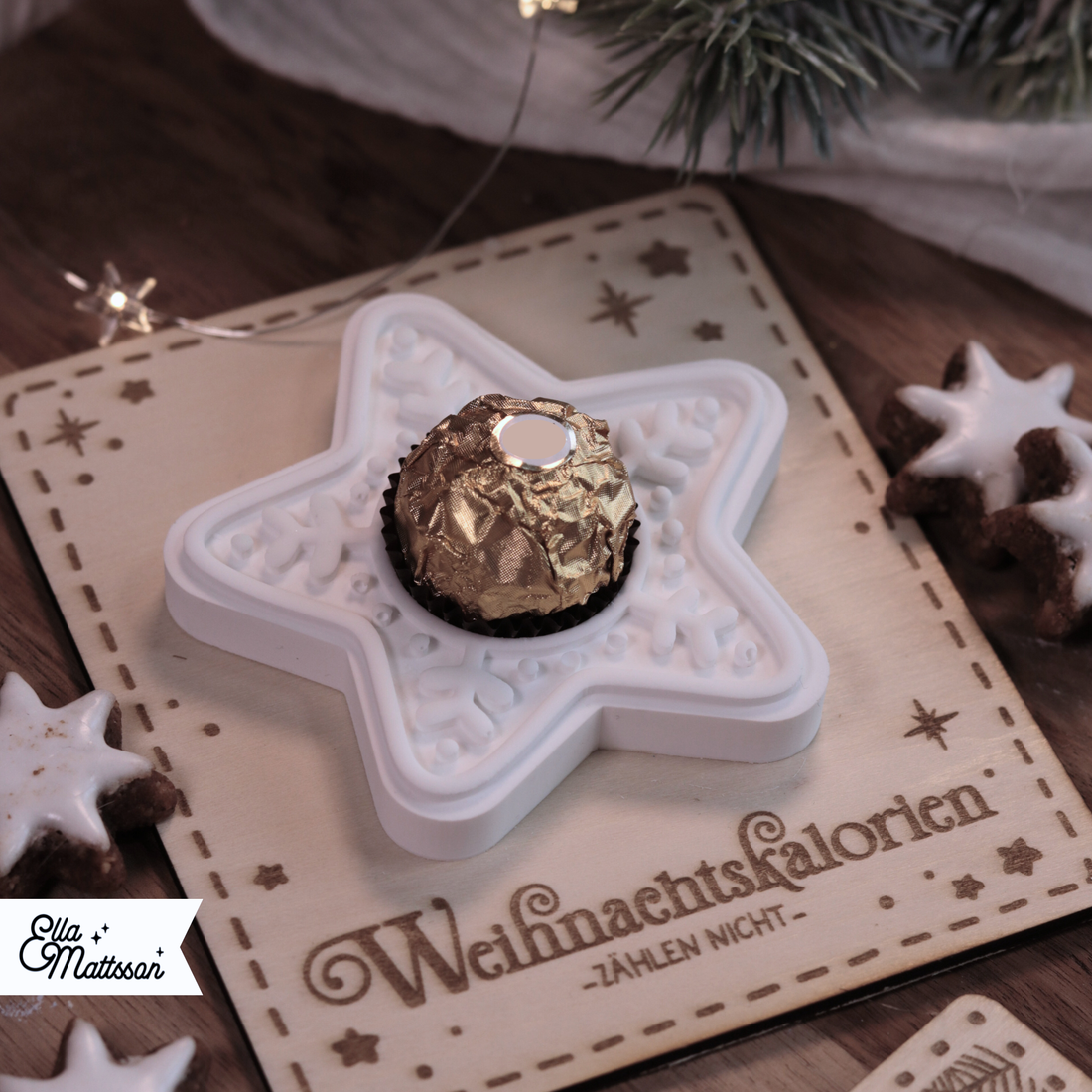 B- Ware - Silikonform - Lebkuchen Stern für Schokokugel (Mit Gratis Lasercut Dateien + Stabkerzen Einsatz)