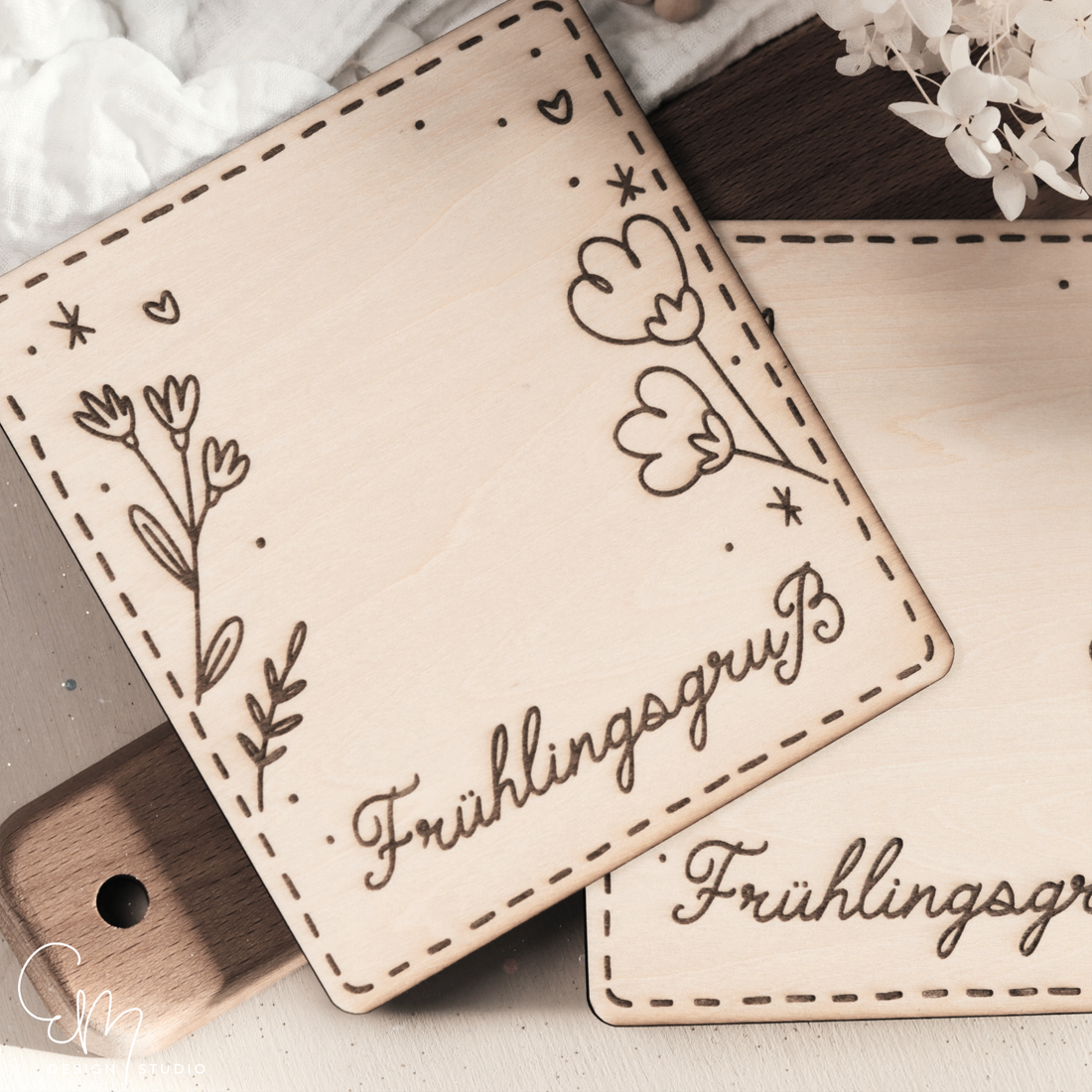 Gelasertes Holzbrettchen - "Frühlingsgruß"