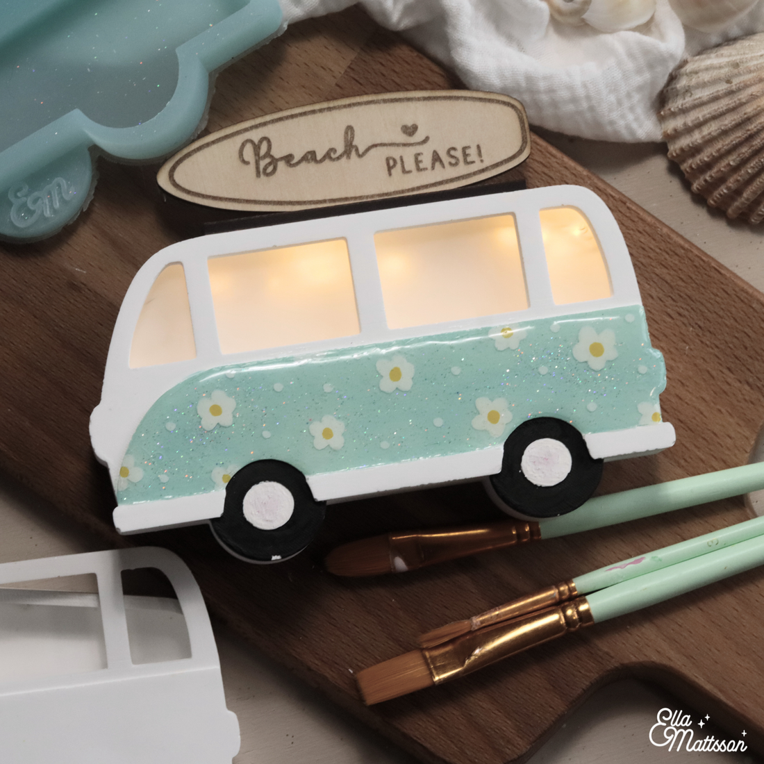 Silikonform - Leuchtender Retro Bus "Luma-Van" mit Gepäckträger + kostenlose Lasercut Dateien