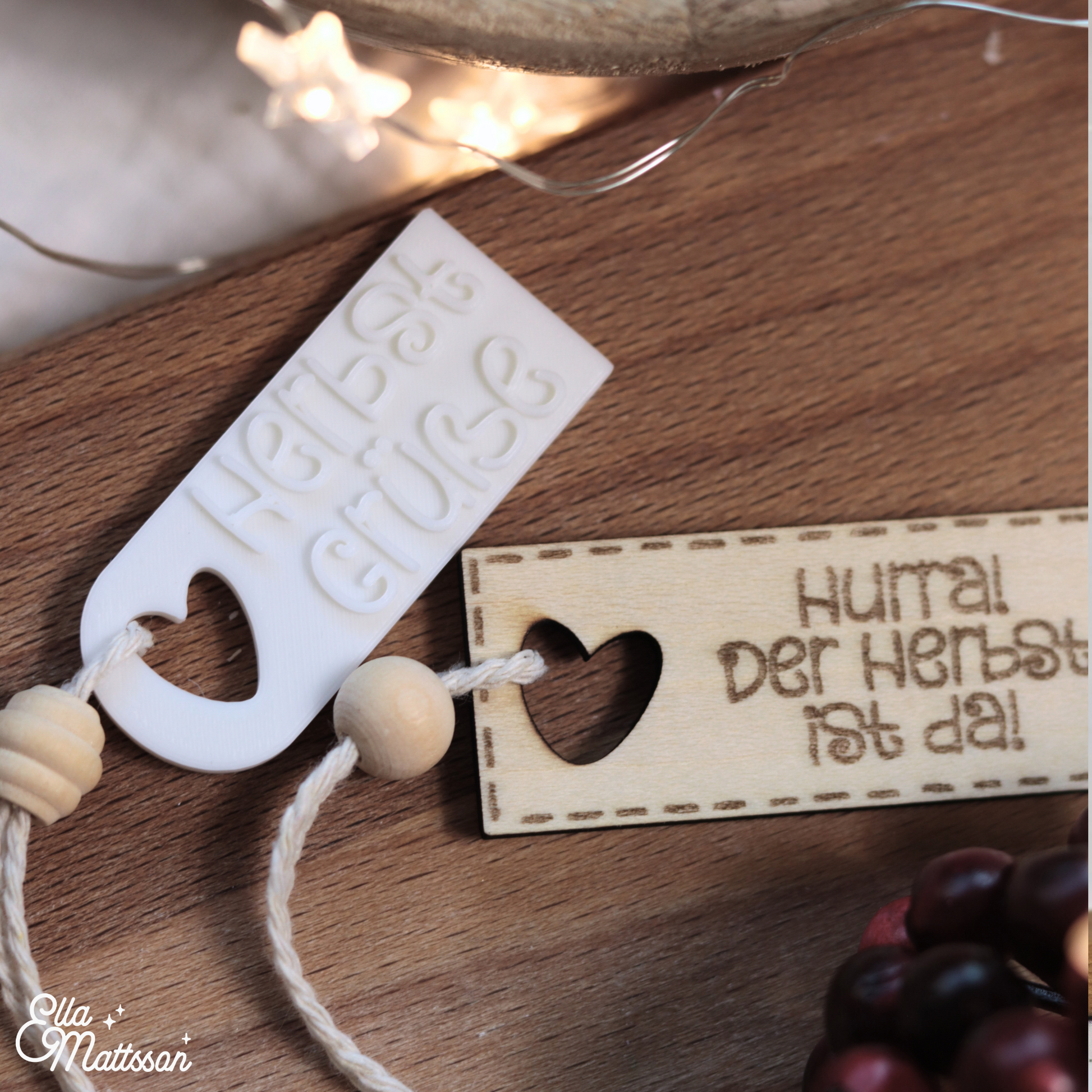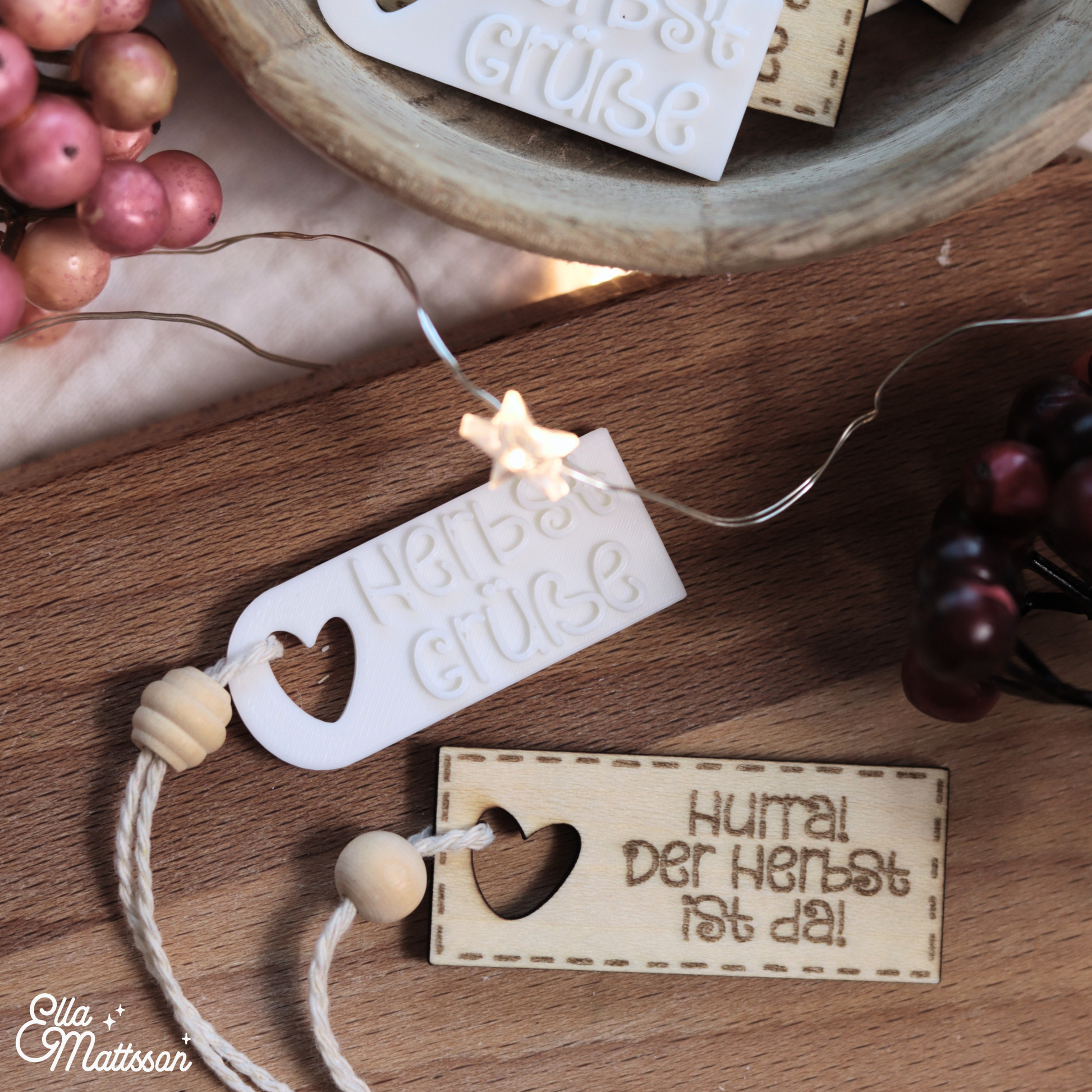 Die Anhänger sind sofort einsetzbar und perfekt für alle, die keinen eigenen Lasercutter besitzen, aber trotzdem nicht auf die feinen Herbstmotive verzichten möchten.