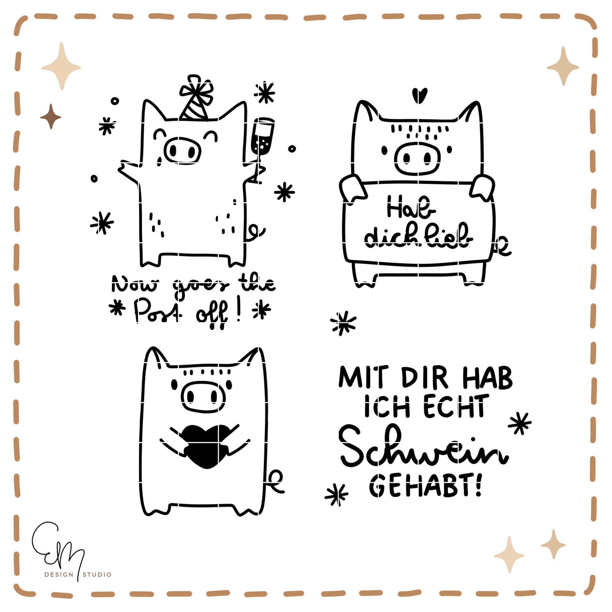 Mit dem Bundle „Schwein gehabt“ zieht eine ordentliche Portion Humor und Herzlichkeit bei dir ein. Die liebevoll gestalteten Schweinchen-Motive kombinieren freche Sprüche mit süßen Illustrationen und eignen sich perfekt für kleine Geschenke, Karten oder DIY-Projekte mit Augenzwinkern.