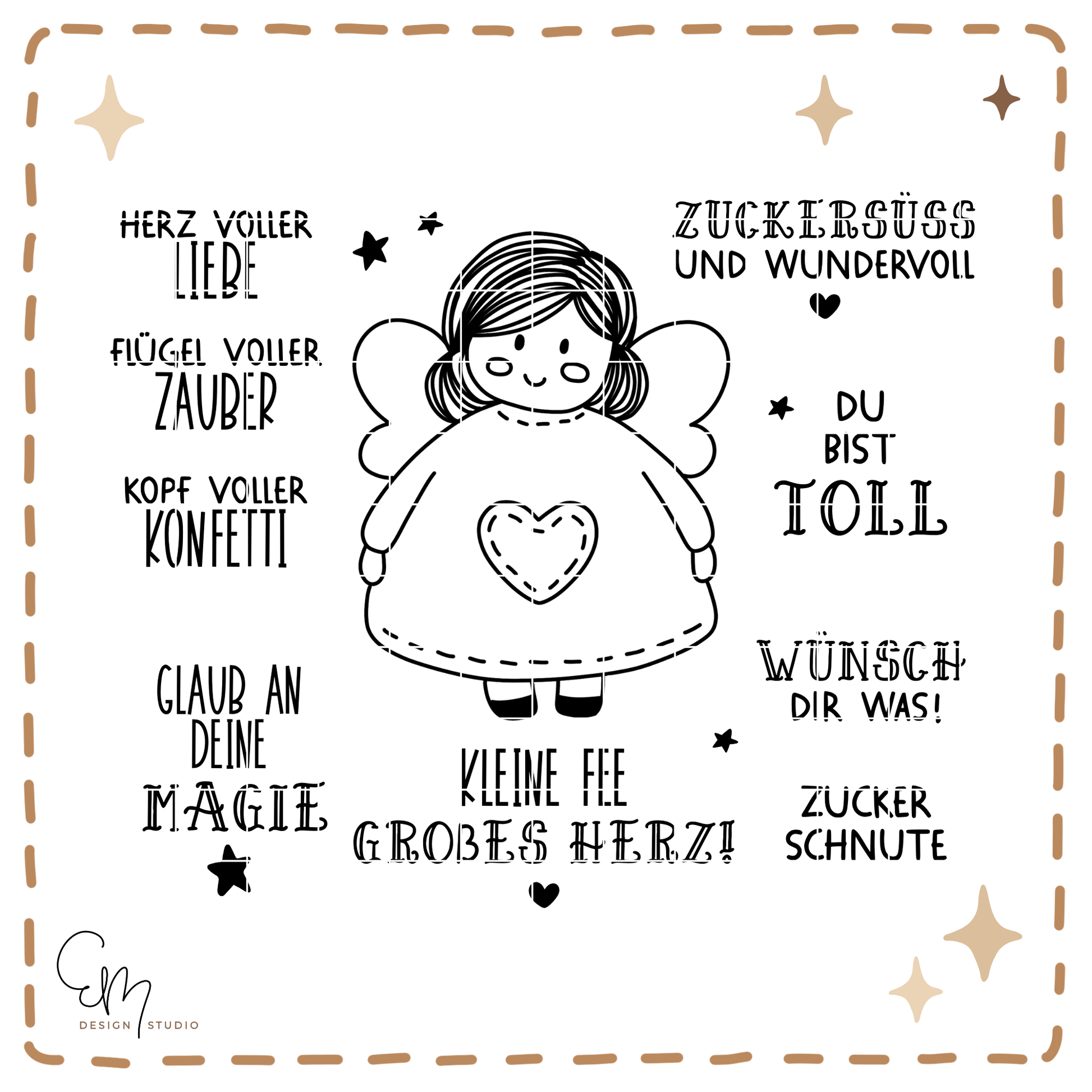 Mit der „Zuckersüßen Pummelfee“ bekommst du ein liebevoll gestaltetes Bundle für zauberhafte Lasercut- und Plotterprojekte. Die kleine Fee bringt jede Menge Wärme, Charme und ein großes Herz mit und eignet sich perfekt für Geschenke, Kinderzimmerdeko, Glücksbringer, Mutmacher und kleine Herzensprojekte.
