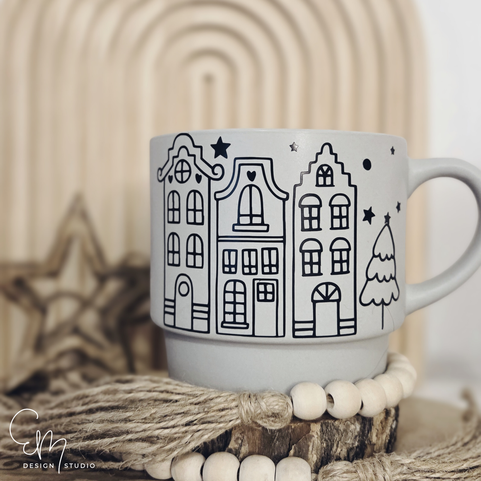 Mit der Datei „Grachtenhäuschen Winteredition“ erhältst du eine liebevoll gestaltete Häuserszene aus drei dekorativen Grachtenhäusern und einem passenden Winterbäumchen. Die Motive eignen sich hervorragend für Holzklötzchen, Leisten, Tabletts oder winterliche Dekorationen. Die charmanten Fassaden und kleinen Details bringen sofort eine stimmungsvolle Winteratmosphäre in dein Zuhause.
