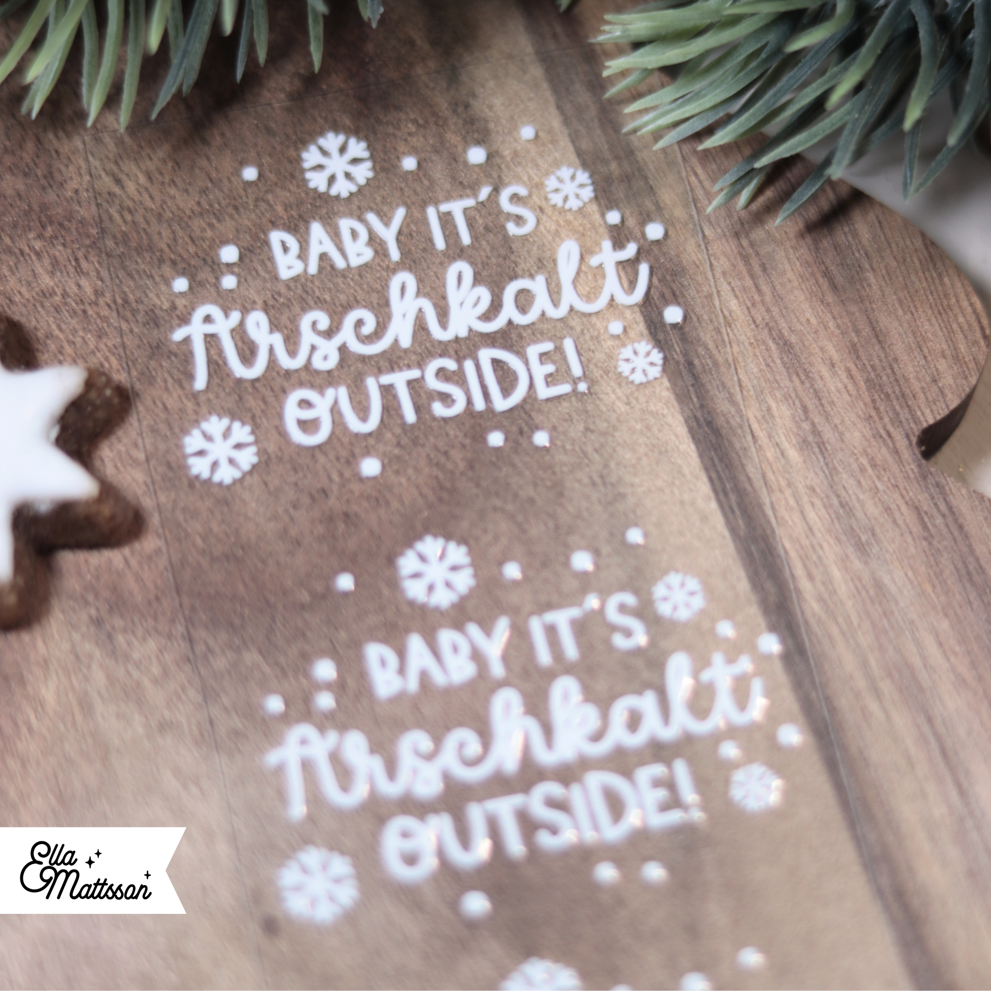 DIN A6 Bogen – Für alle, die den Winter mit einem Augenzwinkern nehmen: Die Rub-On-Sticker „Baby it’s Arschkalt outside!“ bringen humorvollen Frost-Charme in deine Deko!