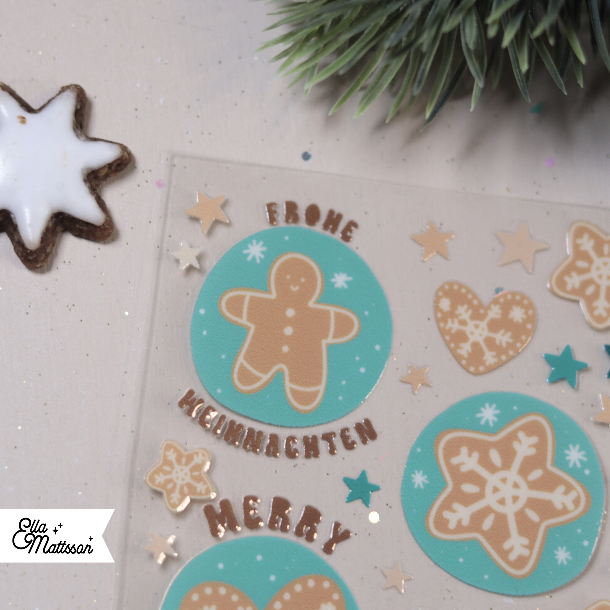 Der Stickerbogen „Ginger Bread Cookies“ bringt weihnachtliche Gemütlichkeit auf jedes Werkstück: kleine Lebkuchenmännchen, Herzen, Sterne und Schneeflocken zaubern sofort festliche Stimmung. Ideal zum Verzieren von gegossenen Dekoobjekten, Holzarbeiten, Karten, Geschenkverpackungen oder Kerzengläsern.