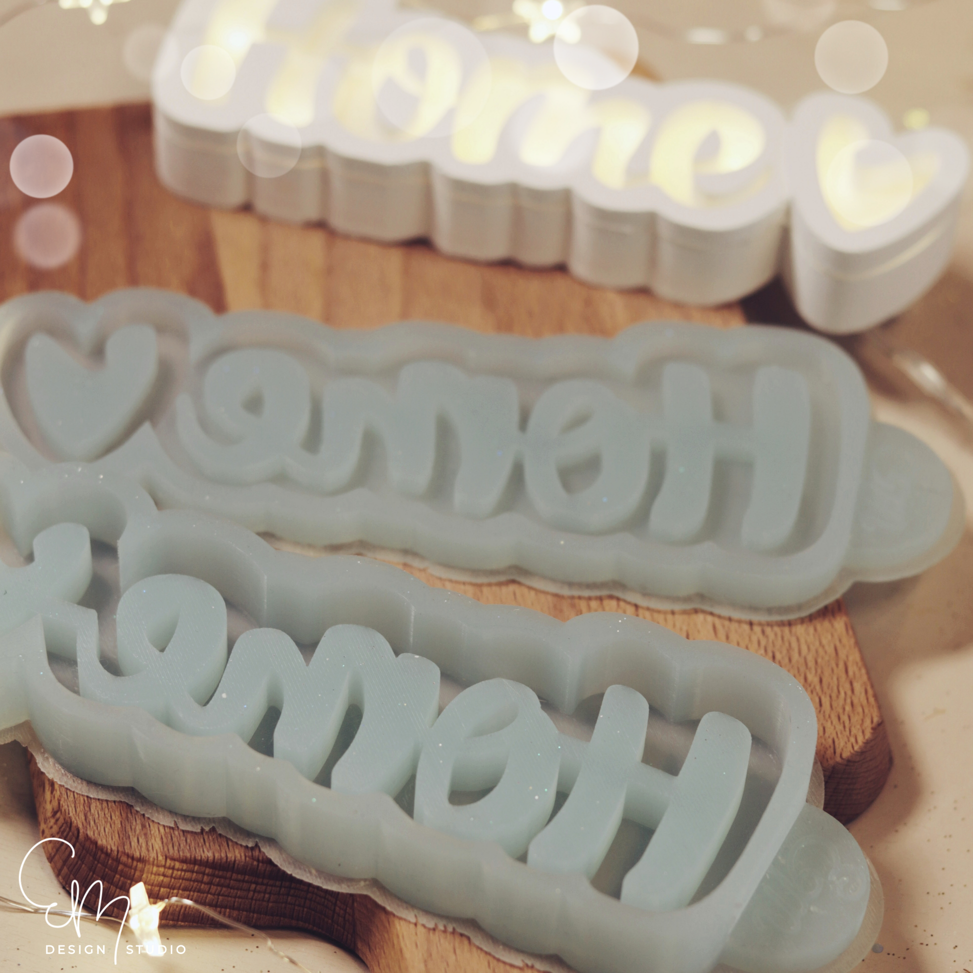 Die Form besteht aus zwei Teilen, die nach dem Gießen miteinander verbunden werden. Auf der Rückseite befindet sich wie gewohnt eine Aussparung für eine LED-Lichterkette, sodass dein Schriftzug sanft von innen beleuchtet werden kann.