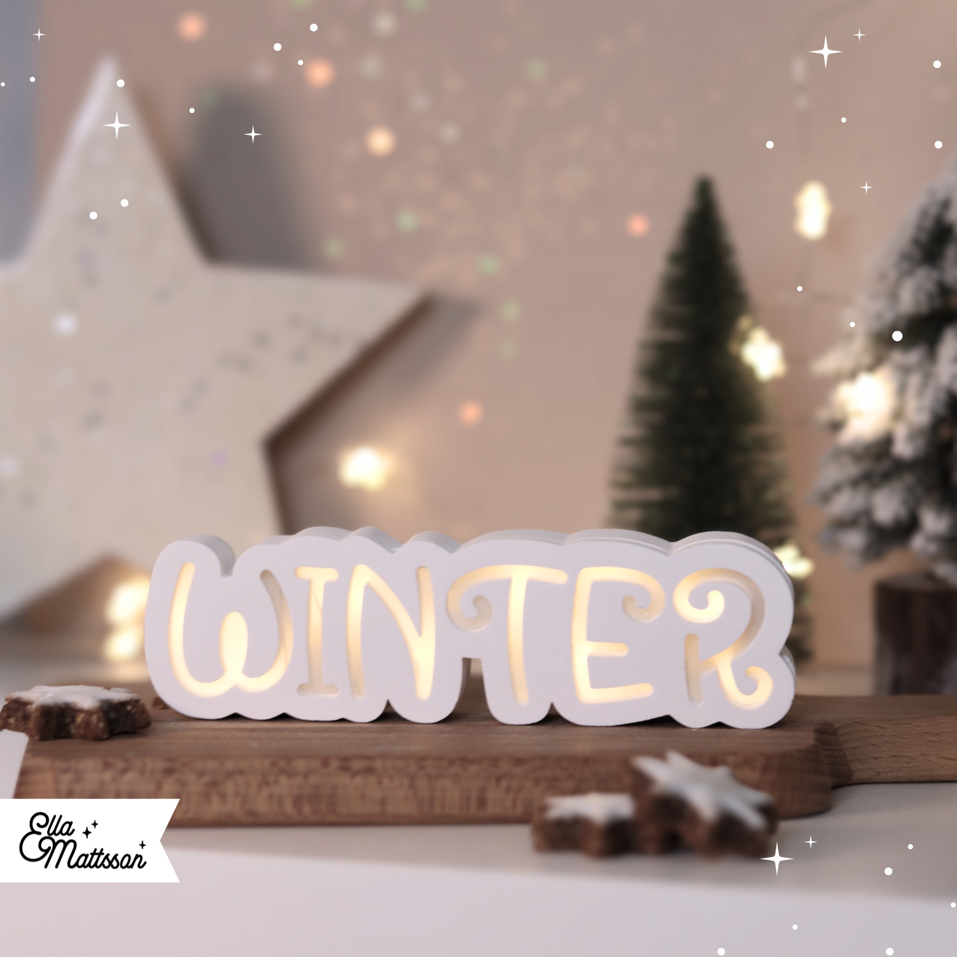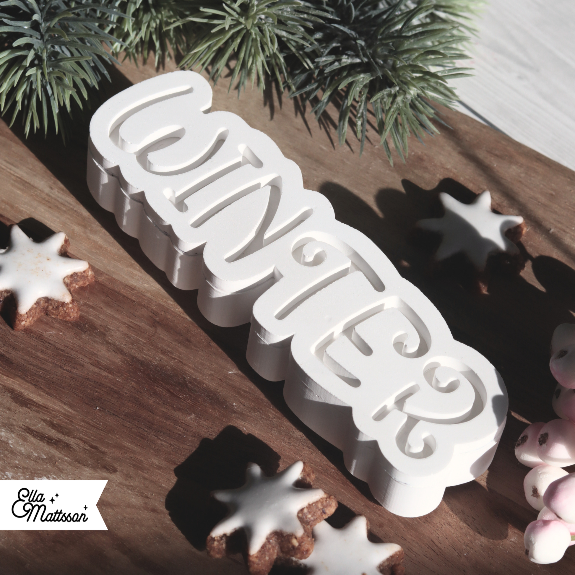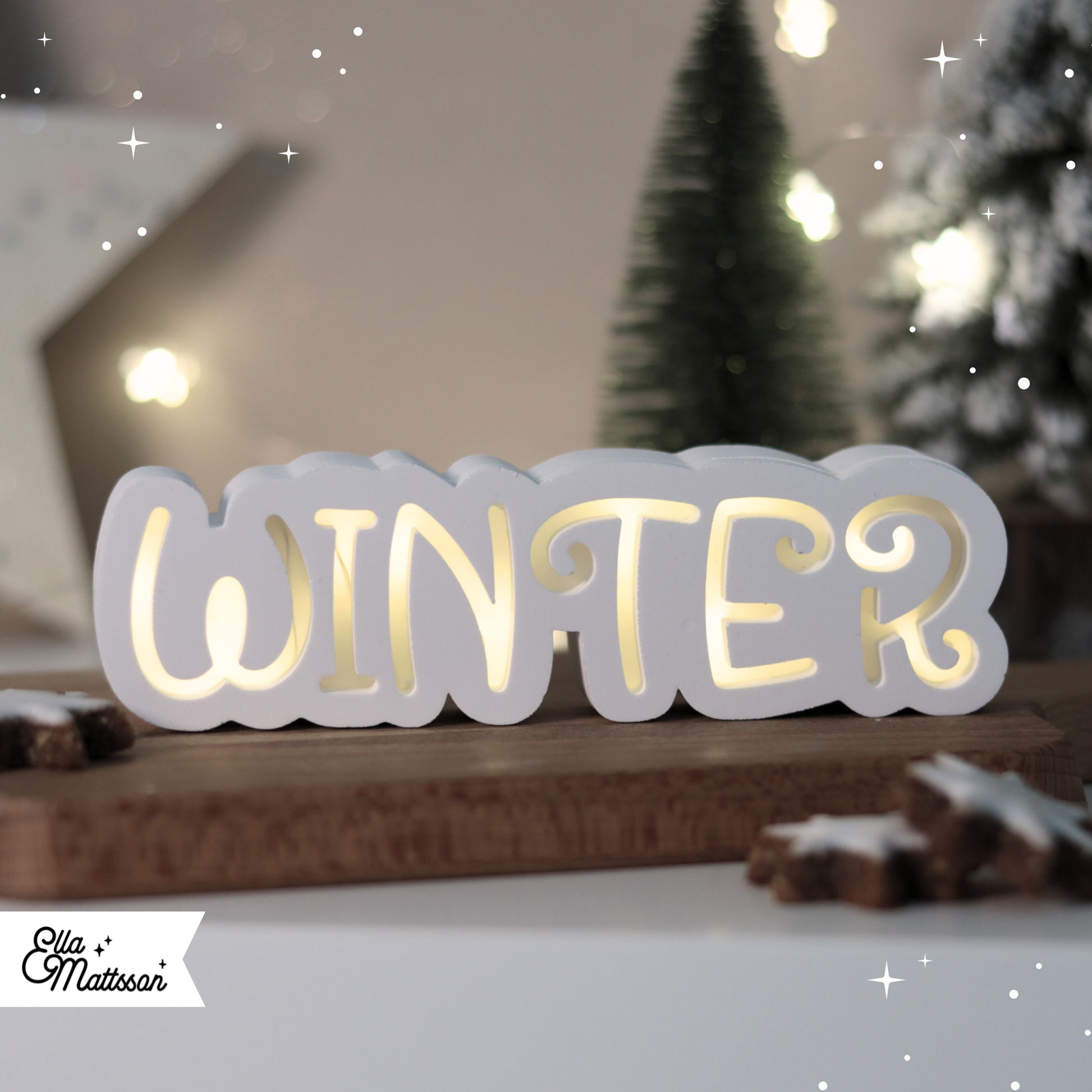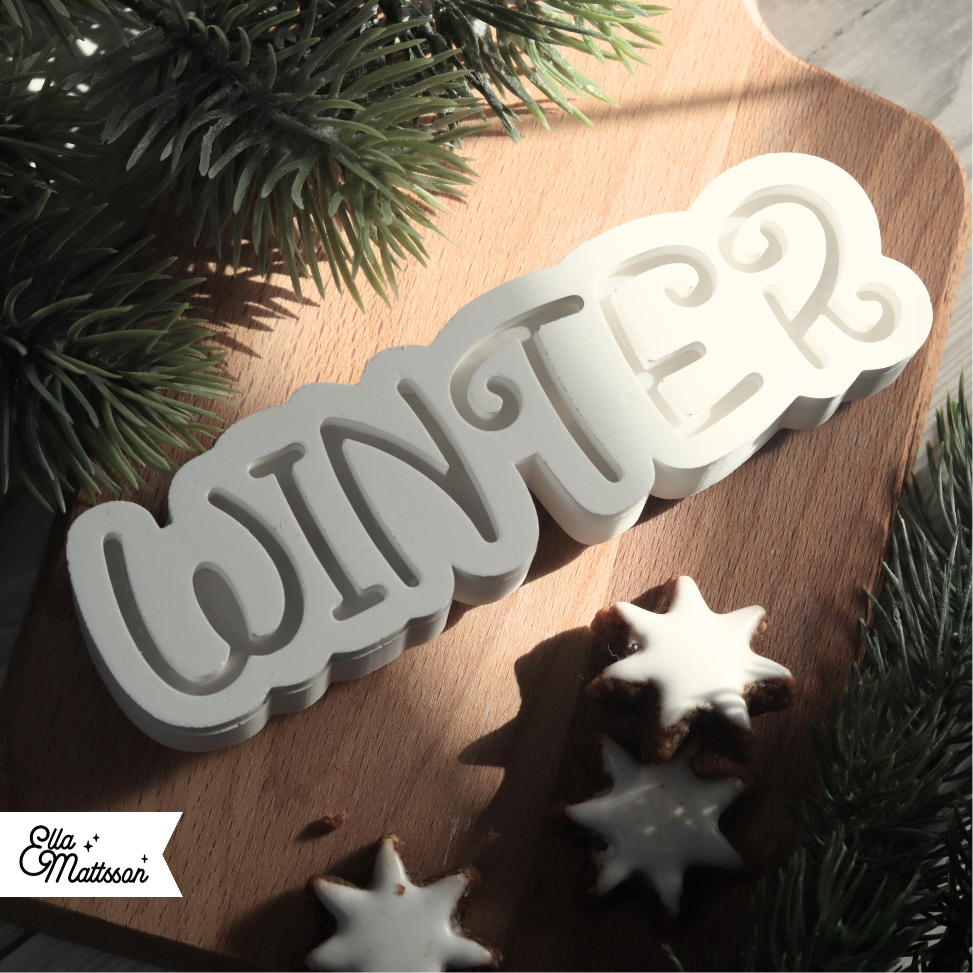 Mit der schönen Silikonform „Leuchtender Winter Schriftzug“ gießt du ein stimmungsvolles Lichtobjekt im modernen Scandi-Stil. Die geschwungene, leicht verspielte Schrift wirkt elegant und dennoch schlicht – perfekt für eine stilvolle Winter- oder Weihnachtsdekoration. Der Schriftzug wird in zwei Teilen gegossen, die nach dem Aushärten einfach zusammengeklebt werden. Durch eine kleine Aussparung auf der Rückseite lässt sich eine Lichterkette einfädeln, die das Wort von innen heraus sanft erleuchtet und so für eine gemütliche, warme Atmosphäre sorgt.
