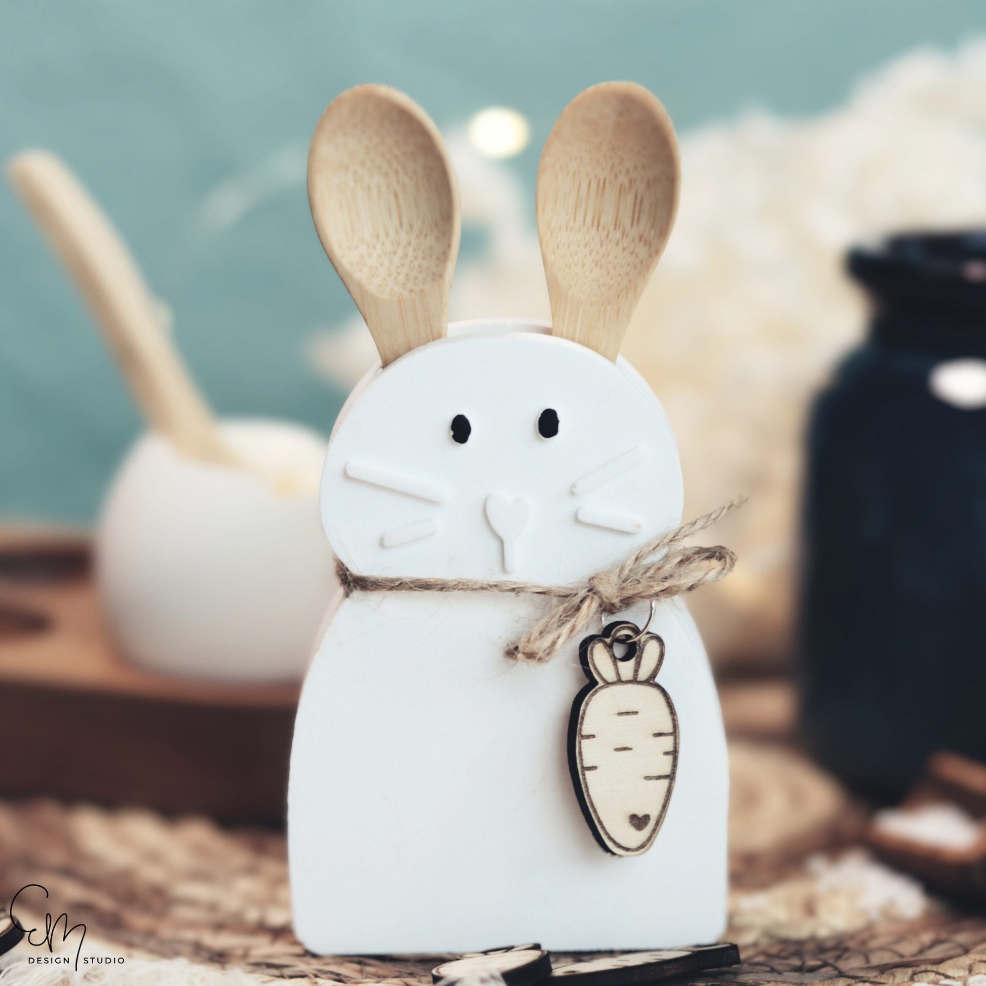 Silikonform - "Lotti Löffelstiel" Häschen für Holzlöffel Ohren (nicht um Lieferumfang enthalten) + Gratis Möhren Lasercut Datei