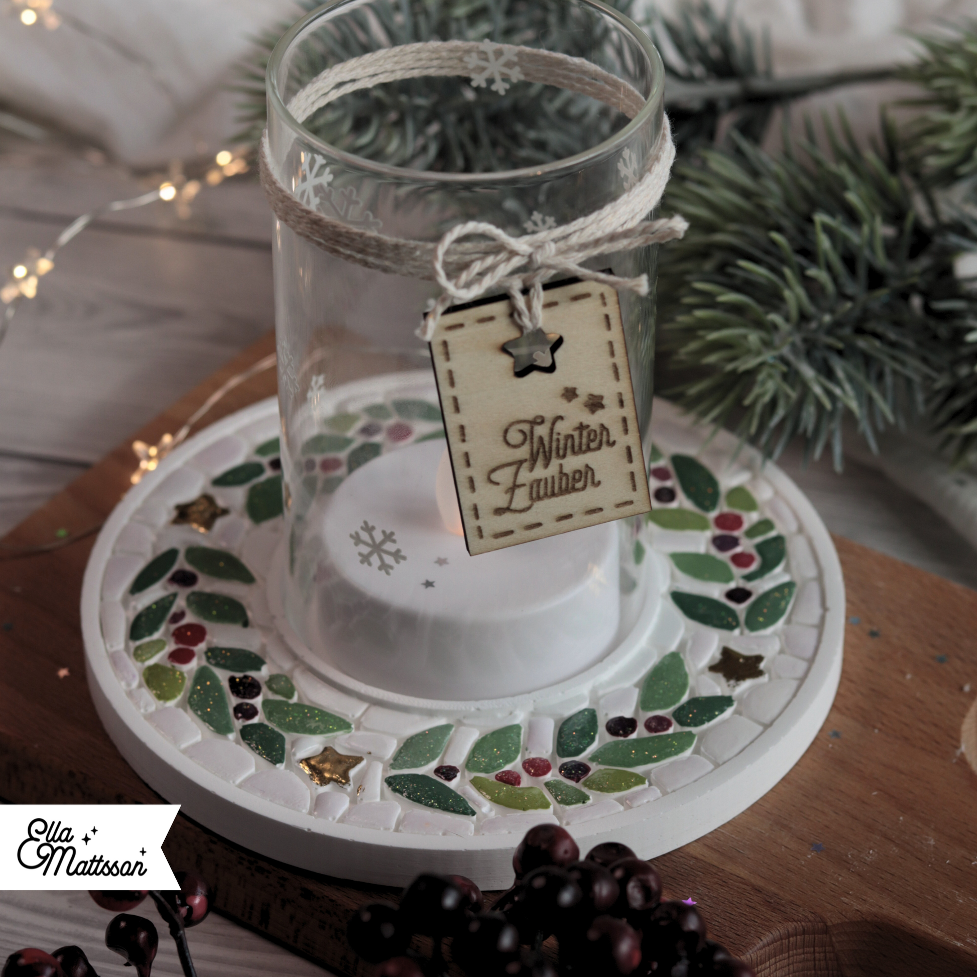Silikonform Mosaik Tablett M - "Winterbeeren-Lichtteller"