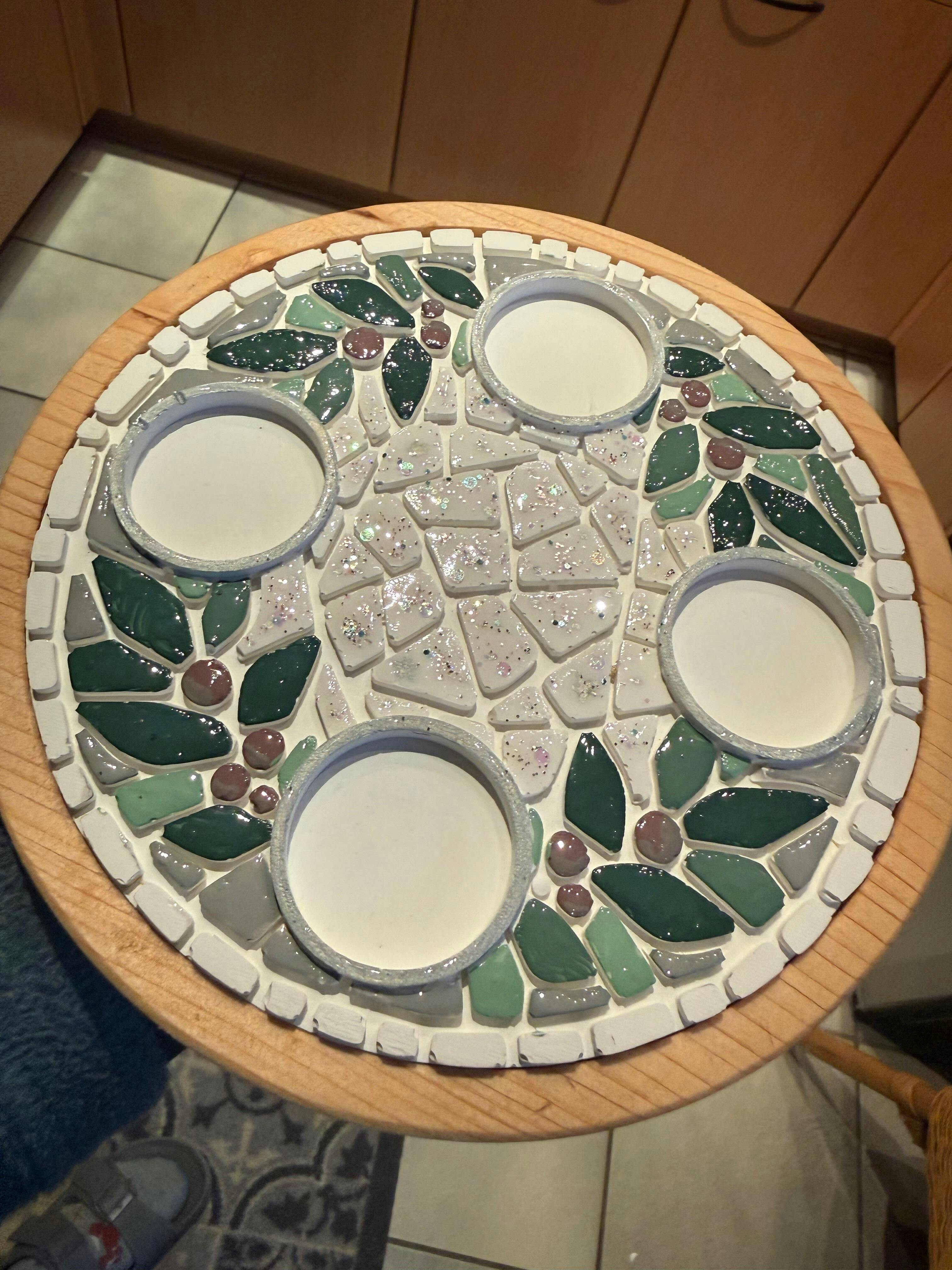 Der gegossene Lichtteller passt exakt in den neuen Tablett-Rohling „Rondella“. Dieser sorgt nicht nur für Stabilität, sondern eröffnet dir auch weitere kreative Möglichkeiten, zum Beispiel beim Bau einer Etagere oder als dekorative Basis für deine Mosaikarbeiten.